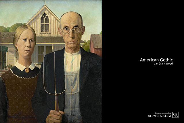 Peinte en 1930 par Grant Wood, cette œuvre simple fut inspirée par l’architecture d’une ferme du 19ème siècle et par les personnes qui vivaient dans ces habitations.