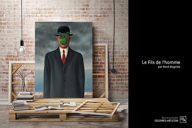 René Magritte l’a peinte comme un autoportrait. La peinture est composée d'un homme vêtu d'un manteau et d'un chapeau melon, debout, en face d'un petit mur, au-delà duquel on devine la mer et un ciel nuageux. Le visage de l'homme est en grande partie masqué par une pomme verte qui semble flotter dans le vide.